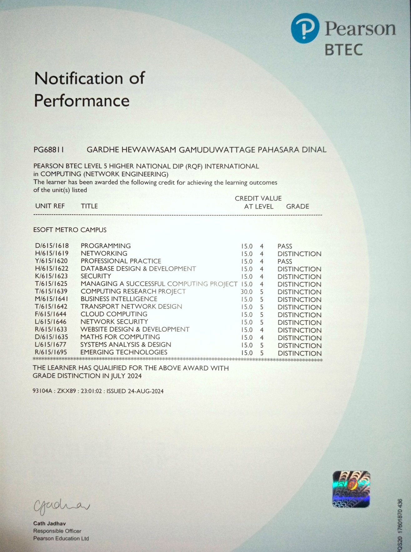 Grade: Overall Distinction & Top Performer (Overall) for the 2022/2023